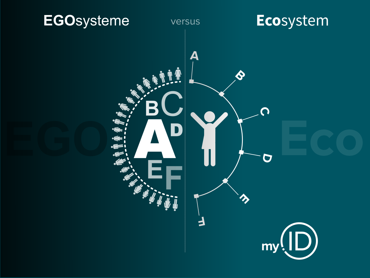 Bestehen und Denken in Netzwerken statt in Ego-Systemen um eine positive Wirkung auf die Welt zu erzielen. Mit einem qualitativ hochwertigen Ansatz werden die richtigen Nutzerkriterien für das my.ID Ecosystem geschaffen, um so die